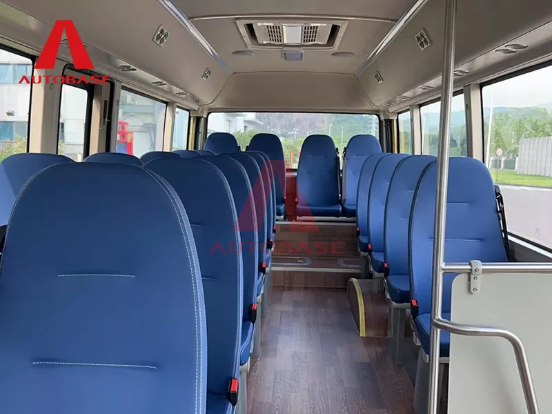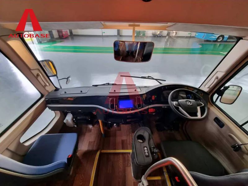 Konstrueret til ydeevne og pålidelighed er 7,2 m Pure Electric Bus udstyret med et sofistikeret luftaffjedringssystem foran og bagpå. Dette sikrer en bemærkelsesværdig jævn og stabil tur på tværs af forskellige byterræner. Den kan prale af imponerende egenskaber, herunder en maksimal klatrehældning på 25 % til håndtering af hældninger med lethed og en tophastighed på 80 km/t, hvilket gør den ideel til effektiv by- og forstadscirkulation. Interiøret er gennemtænkt konfigureret til at optimere passagerernes komfort og driftseffektivitet. Den har et praktisk 2+1 sædearrangement, der kulminerer med en siddeplads på 22 passagerer plus 1 chauffør. Dette layout maksimerer pladsudnyttelsen og sikrer komfortable siddepladser, samtidig med at passagerflowet bliver lettere. Kabinen er designet med et lavt gulv, hvilket forbedrer tilgængeligheden for alle passagerer, inklusive ældre og personer med mobilitetsudfordringer.